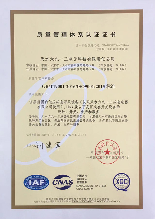 質(zhì)量管理體系認證證書(shū)